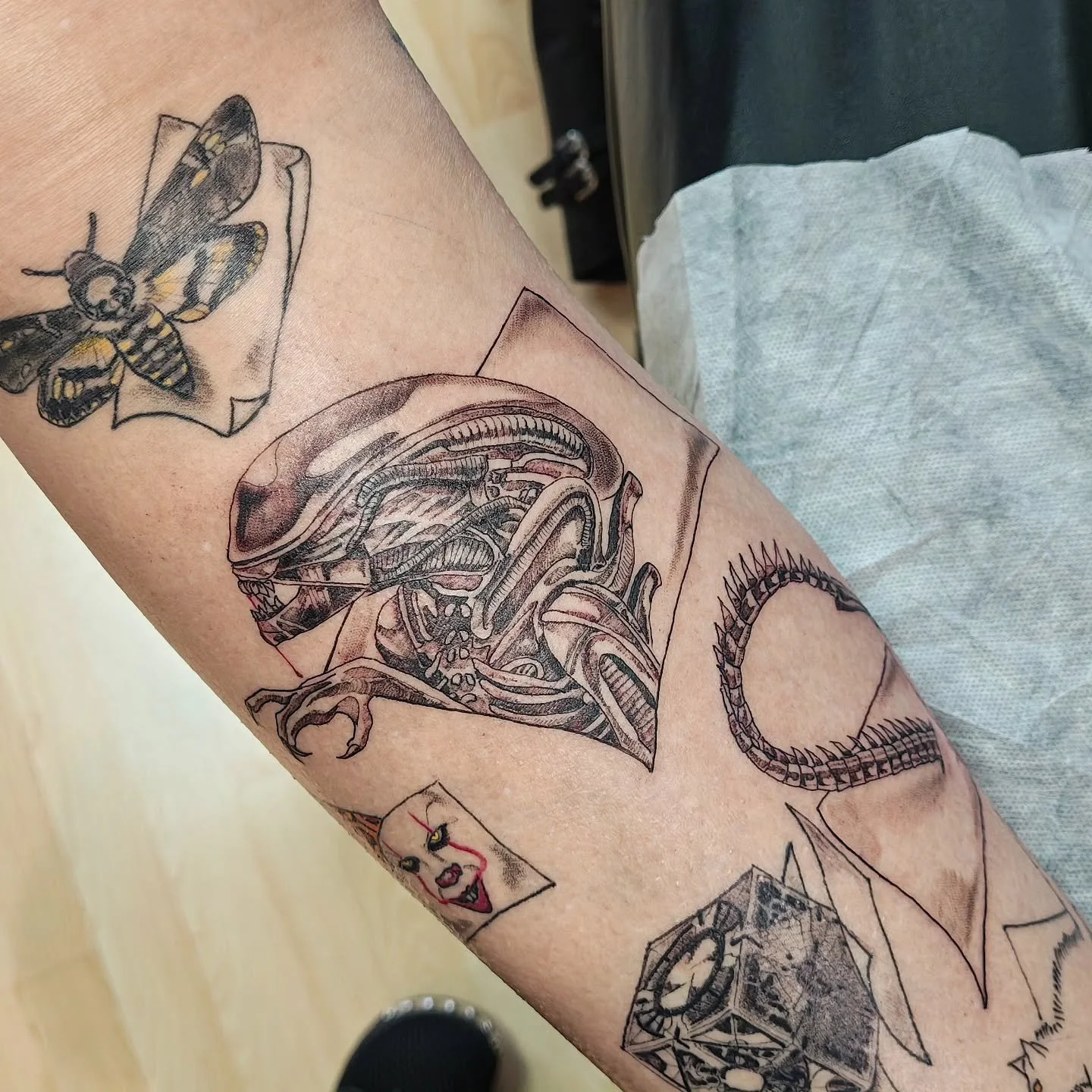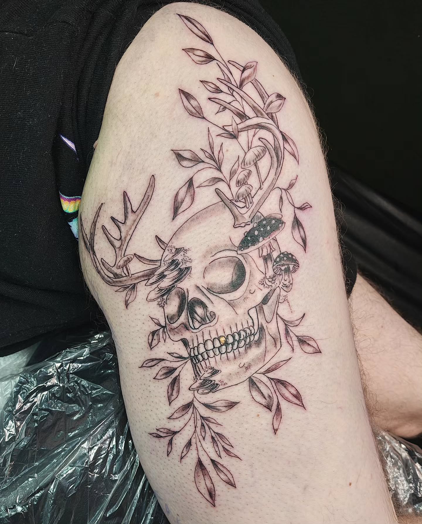 I started tattooing in 2018 and discovered a great interest in tattooing botanical, witchy, illustrative designs. I like using clean, fine, lines and delicate shading to create dimensional pieces with themes from dark and occult, to light and airy. I love fairies, magic, Norse mythology, and dystopian media! Designs that come from my heart-most heart explore the dark feminine.